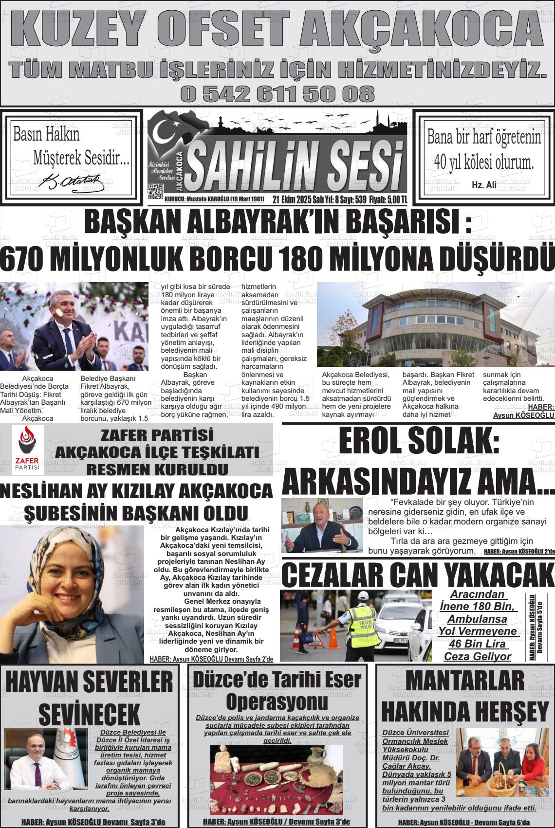 Düzce Yerel Gazeteleri 06 Mart 2026, Cuma Günü Manşeti